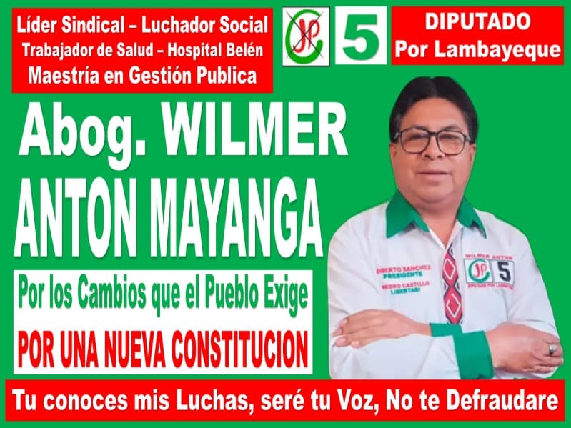 Wilmer Antón Antón Mayanga, abogado de profesión, sindicalista del sector salud y servidor público del Hospital Belén de Lambayeque bajo el régimen 276, forma parte del grupo de trabajadores que esperan acceder a este beneficio largamente demandado. En ese contexto, ha señalado que su eventual llegada al Parlamento buscará garantizar la culminación de este proceso legislativo y la implementación efectiva de la norma.